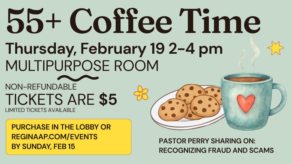 Join us for an afternoon of connection, conversation and a time with Pastor Perry share about recognizing fraud and scams.